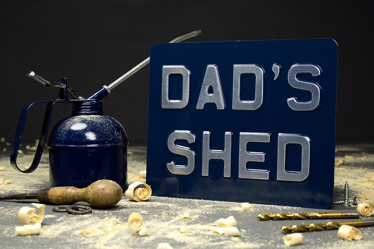 Image: Dad's Shed (8 x 6.1/2") Norton Navy background with Classic Silver digits